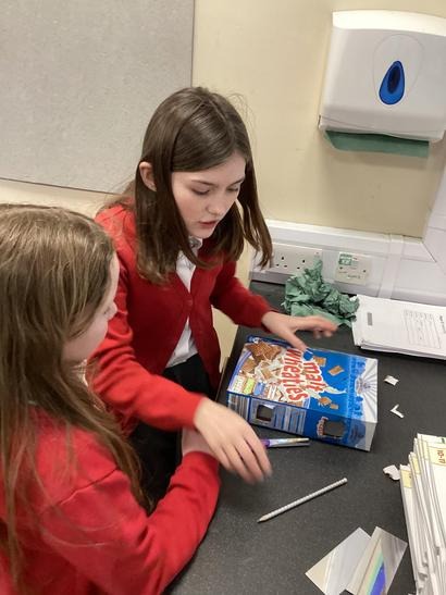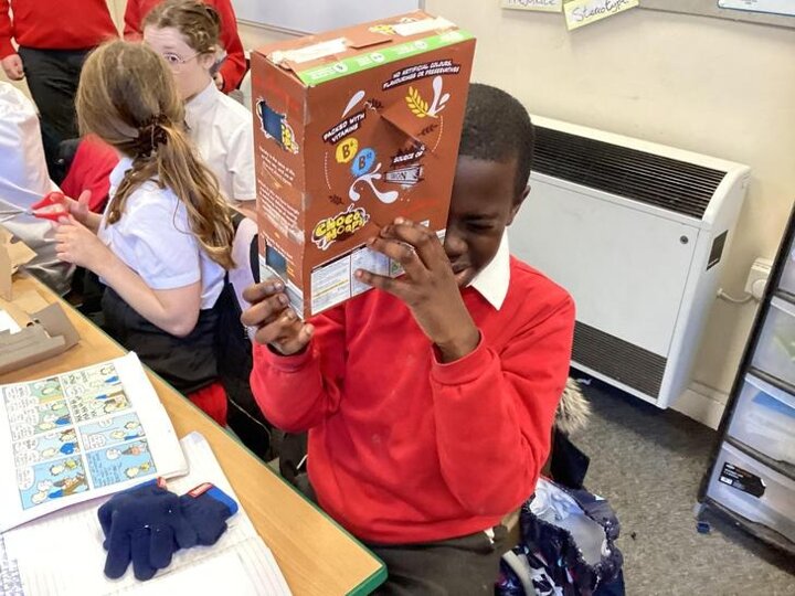 As part of our light unit, we made periscopes to show that light travels in straight lines and reflects off mirrors.