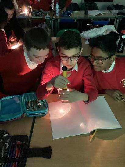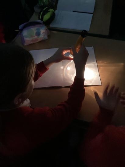 We used torches and triangular prisms to see how light refracts.