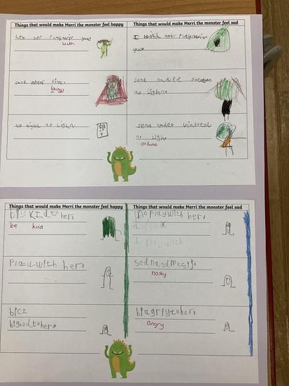 The children were given a variety of scenarios of things said to Merri the Monster online. They had to decide whether it would make Merri the Monster feel happy or sad by giving a thumbs up or thumbs down.