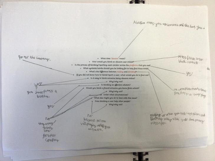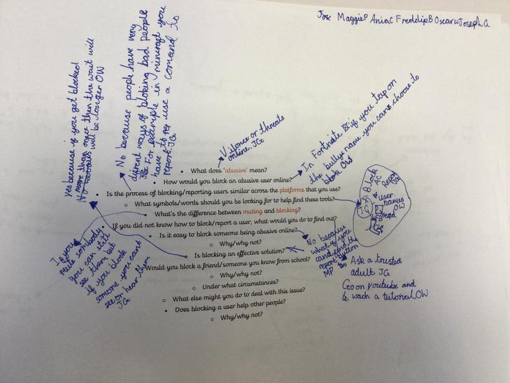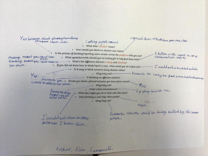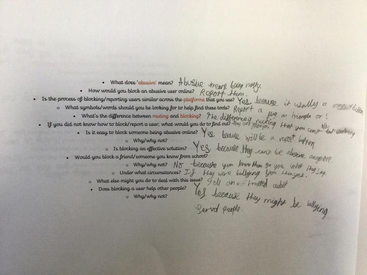 In groups, we talked through some preliminary questions prior to any teaching. We discussed what was abusive behaviour in terms of being online. What would you do if someone was being horrible to you online? How could you block abusive users?