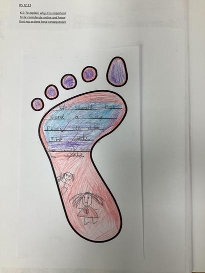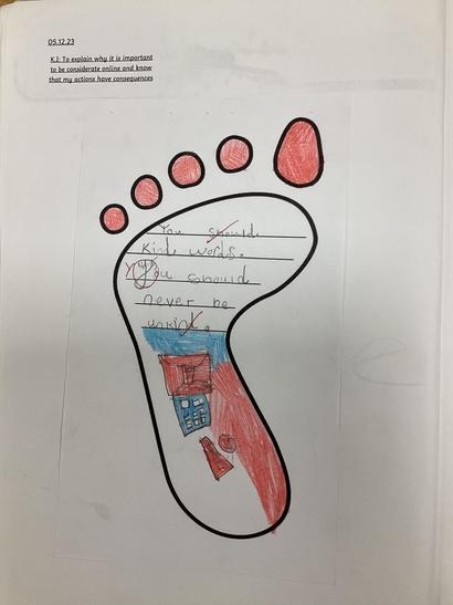 Year 1 have been learning about why it is important to be kind and considerate online. We discussed how we have an impact online and how we should always choose our words carefully.